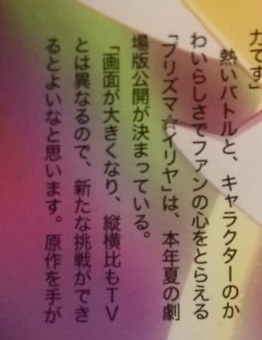 극장판 프리즈마 이리야, 올 여름에 개봉될 예정인 것 같다는 소문