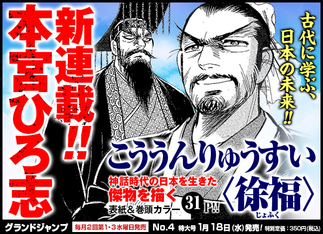 모토미야 히로시씨의 새로운 연재 만화 '행운유수 - 서복'이 시작될 예정