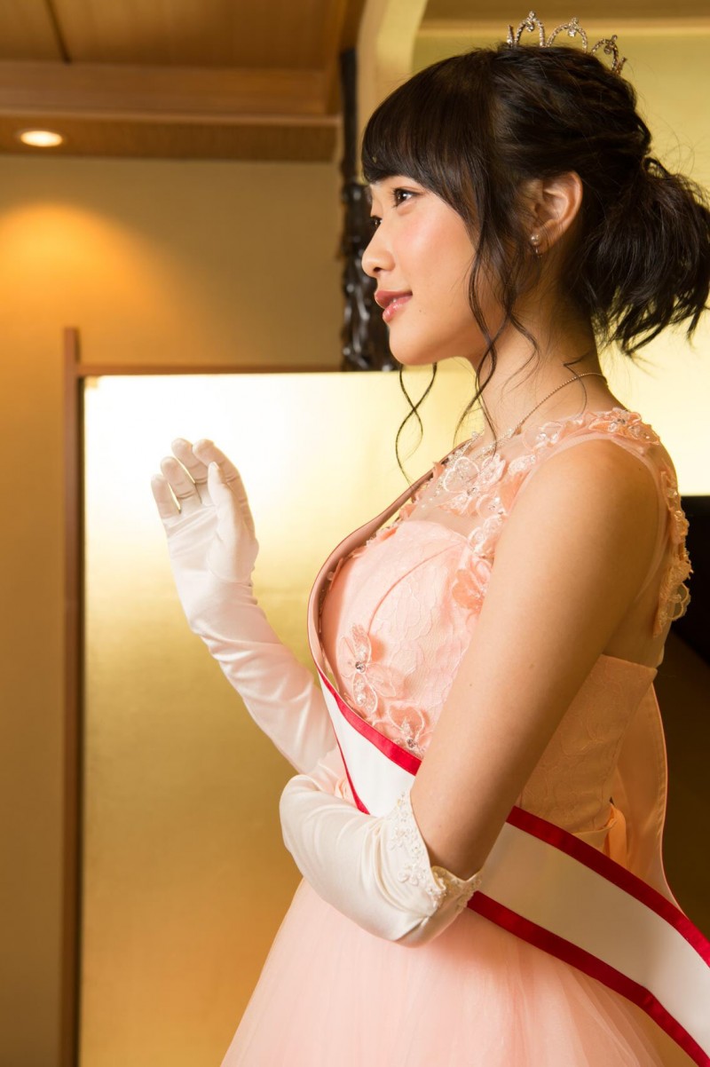 이벤트에서 찍은 사진인 것 같은데요. 의상이 상당히 예쁘네요.