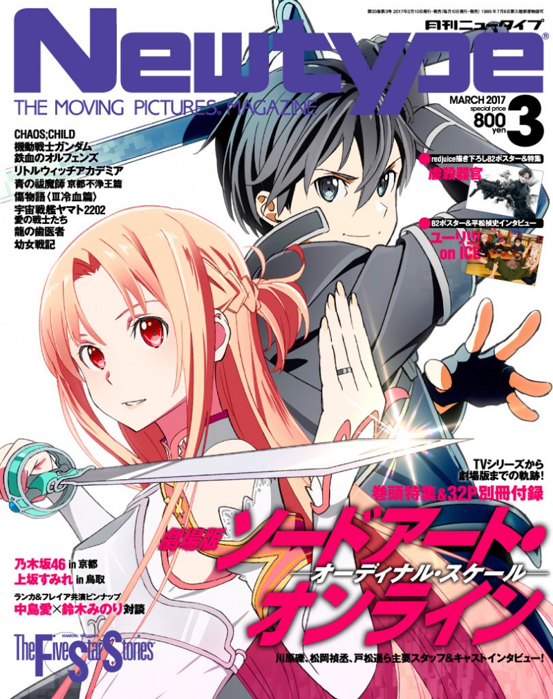 2017년 2월 10일에 발매되는, 아니메쥬, 아니메디아, 뉴타입 2017년 3월호
