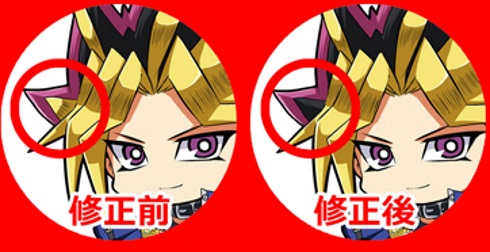 캔배지, 아크릴 키홀더에 사용된 캐릭터 일러스트에 채색이 잘못된 부분이 있