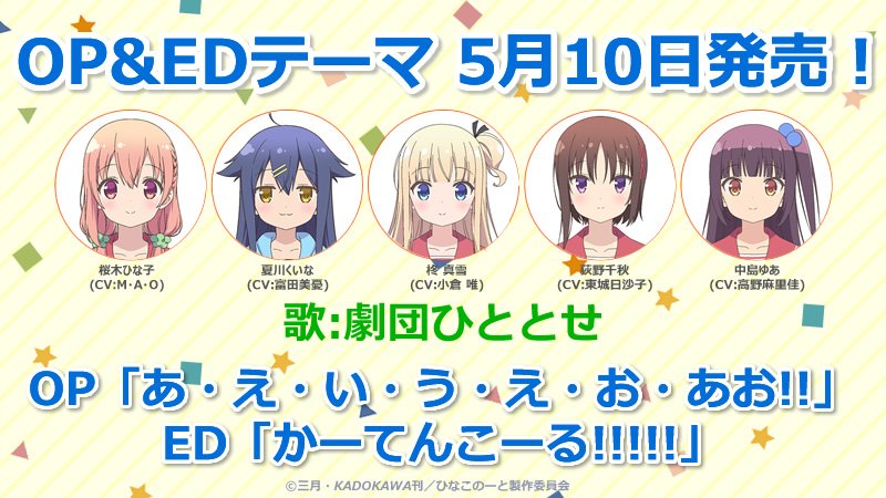 2017년 4월 신작 TV 애니메이션 '히나코 노트'의 오프닝 & 엔딩 테마곡
