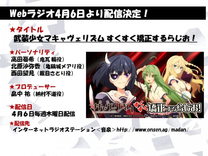 2017년 4월 신작 '무장소녀 마키아벨리즘' 웹 라디오 방송 소식