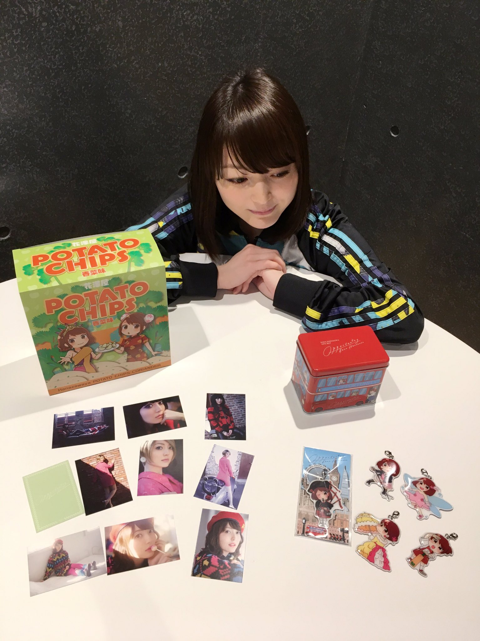 성우 하나자와 카나씨의 라이브 투어 굿즈 소개 사진 몇장