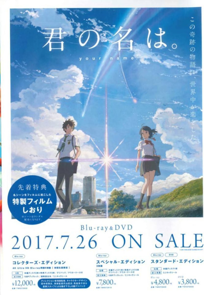 극장 애니메이션 '너의 이름은'의 블루레이 & DVD가 2017년 7월 26일에 발매