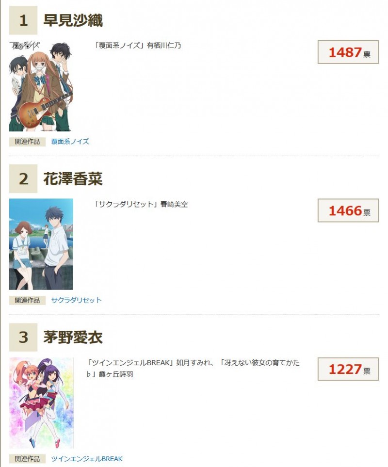 2017년 봄 애니메이션 주연 성우 인기투표 여성편 결과 발표