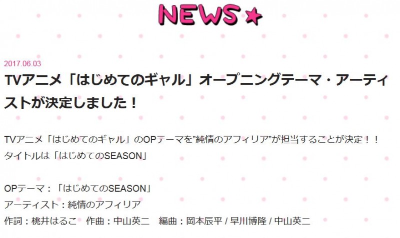 (출처: 공식 홈페이지 http://hajimete-no-gal.jp/)