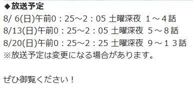 고 합니다. 2017년 8월 6일, 8월 13일, 8월 20일 등 3차례에 걸쳐 4화 또는 5화씩