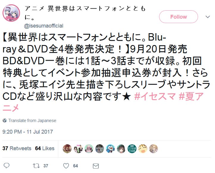 TV 애니메이션 '이세계는 스마트폰과 함께' 블루레이 발매 소식