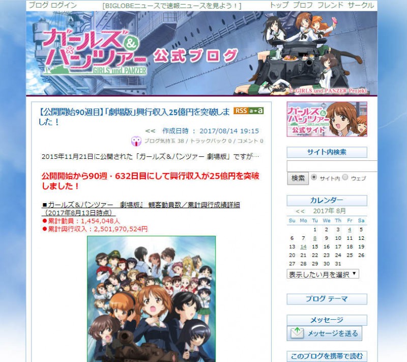 2015년 11월 21일에 일본 현지에서 개봉된 '걸즈 & 판처 극장판'과 관련해서,