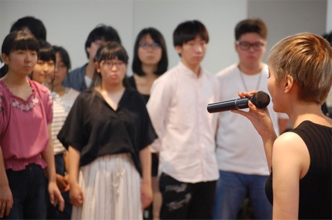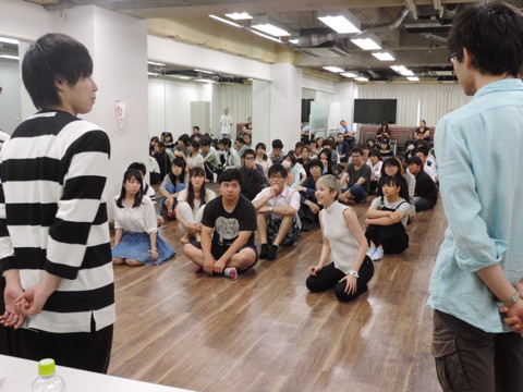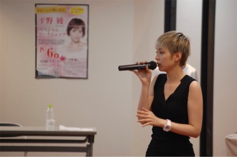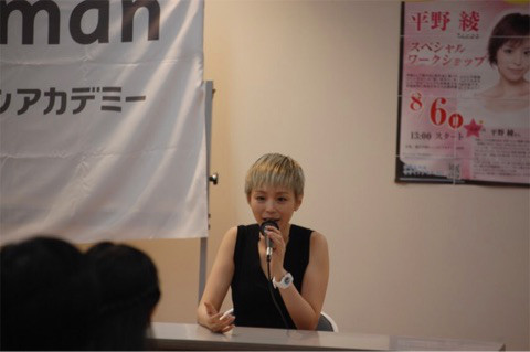 성우 히라노 아야의 사진, 휴먼 아카데미 워크샵에서 젊은 학생들에게 강의하는 모습