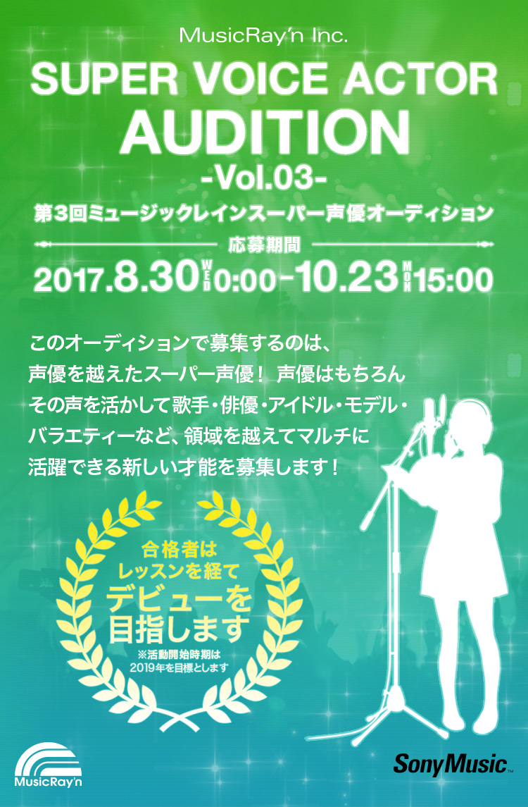 2017년 8월 30일부터 제 3회 뮤직 레인 슈퍼 성우 오디션 응모 접수가 시작되었다고