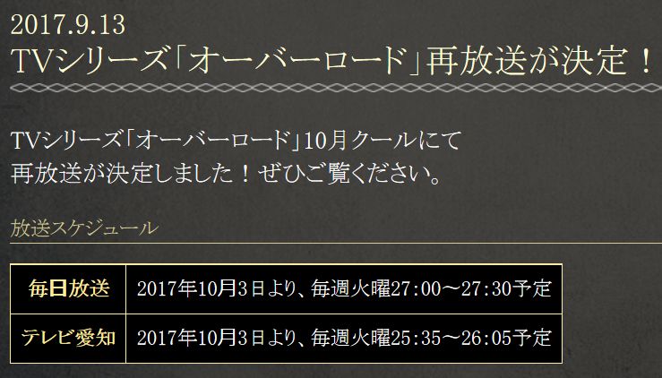 TV 애니메이션 '오버로드'의 재방송이 결정되었답니다. 2017년 10월 3일