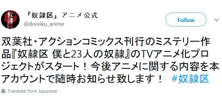 만화 '노예구 - 나와 23인의 노예'의 TV 애니메이션화가 결정되었다고 합니다.