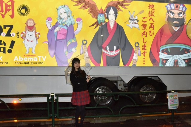 를 축하하기 위해, 성우 우에사카 스미레가 트레일러를 견학하고 현장에서 사진