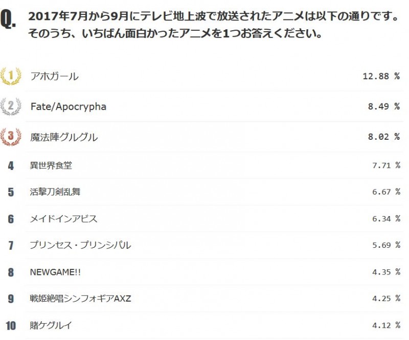 * 2017년 여름에 가장 재미있었던 애니메이션 앙케이트 결과