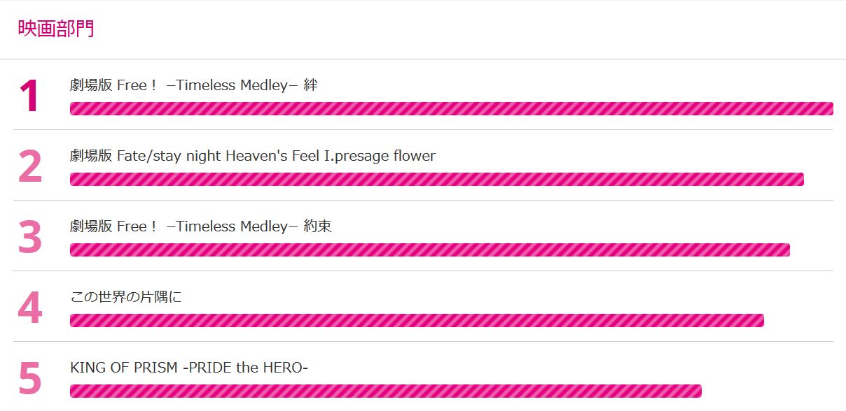 - 1위 : 극장판 Free! Timeless Medley 유대