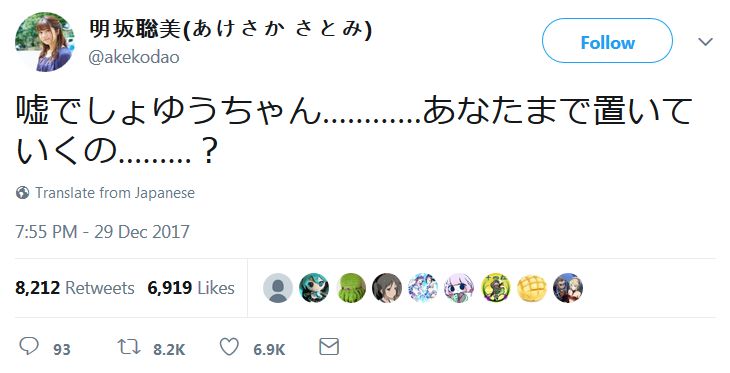 한편, 이 결혼 발표에 대해, 아케사카 사토미씨가 '거짓말이지 유우짱 너까지
