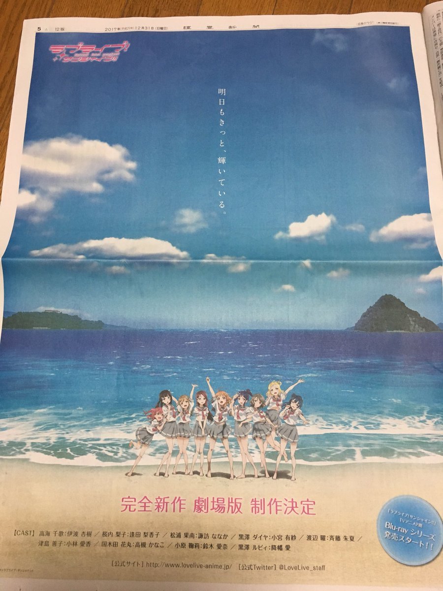 러브라이브 선샤인, 극장판 제작 결정 기념 요미우리 신문 전면 광고