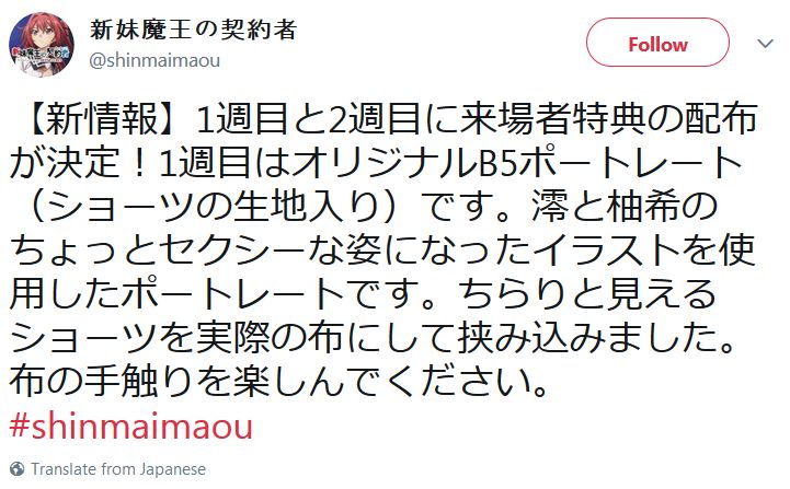 2018년 1월 27일부터 2주간 한정으로 이벤트 상영될 예정인 '새 여동생 마왕의