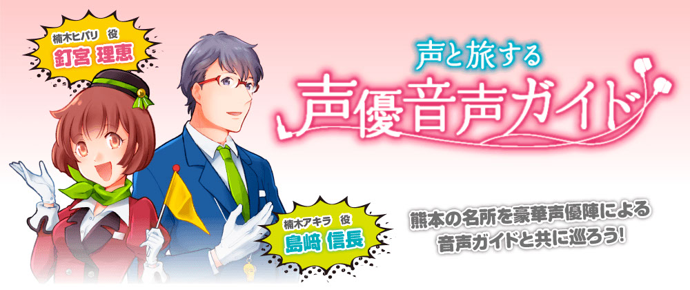 일본 쿠마모토현 관광 명소 음성 가이드 제작, 성우 쿠기미야 리에 & 시마자키 노부나가 캐스팅