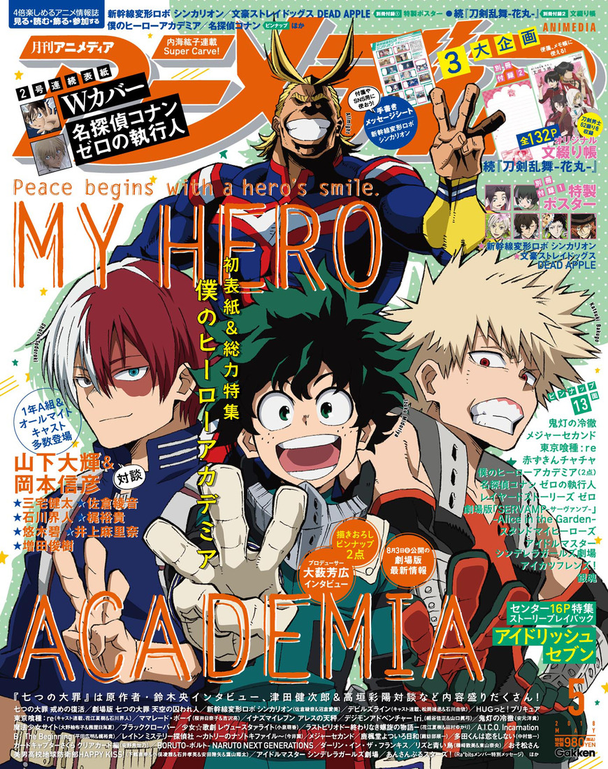 아 5월호의 앞뒤 표지는 '나의 히어로 아카데미아'와 '극장판 명탐정
