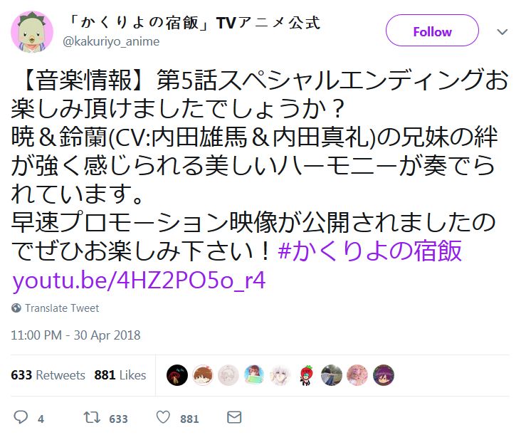 (출처: https://twitter.com/kakuriyo_anime/status/990953977490522113)