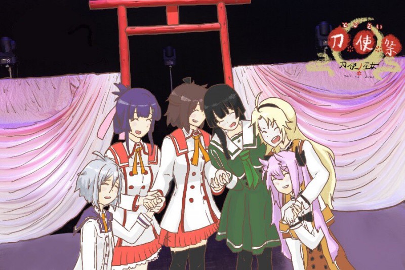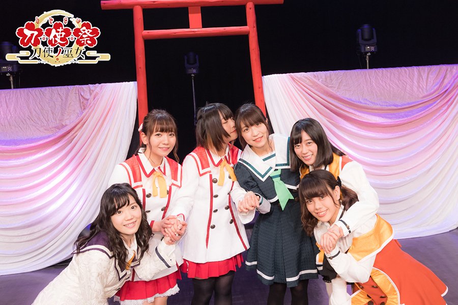 성우 혼도 카에데가 '도사의 무녀' 성우들이 이벤트에서 찍은 기념 사진을 바탕