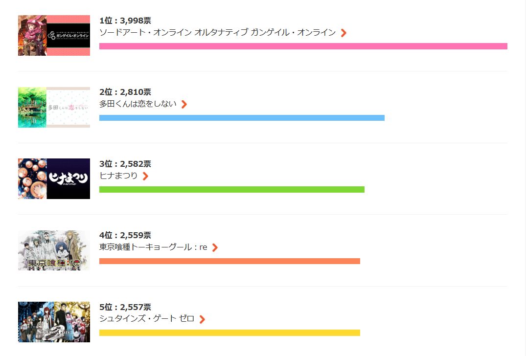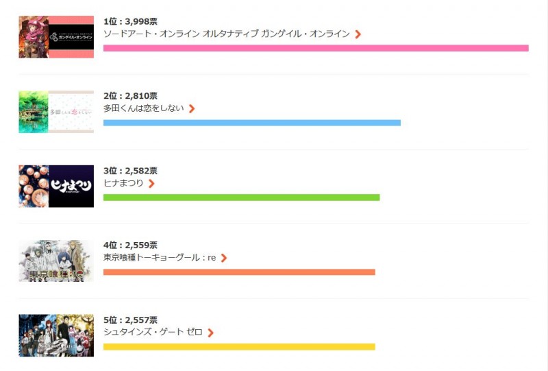 일본의 d아니메스토어, 2018년 봄 시즌 애니메이션 인기 투표 결과 발표