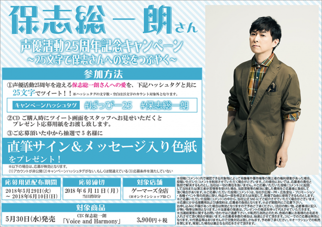 태그 (#ぱっぴー25 #保志総一朗)와 함께 올리고, 25주년 기념 앨범 구입시에 제시