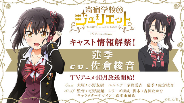 성우 사쿠라 아야네, TV 애니메이션 '기숙학교의 줄리엣'에 추가 캐스팅