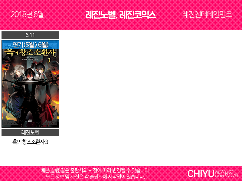 ※ 배본(발행)일은 각 출판사에 사정에 따라 다소 변경될 수 있으며, 티저에서 표지를 가져온 경우 실제 배본(발행)되는 표지와 다를 수 있습니다.