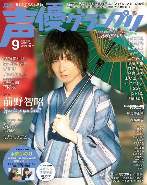 2018년 8월 9일에 발매될 예정인 '성우 그랑프리' 2018년 9월호의 표지 사진