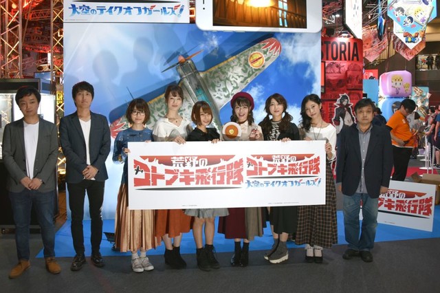 TV 애니메이션 '황야의 코토부키 비행대'의 발표회가 개최된 모습