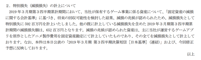'우리 회사의 게임과 관련된 자산 5억 9200만엔의 장래 회수 가능성