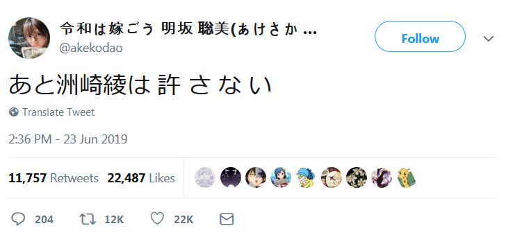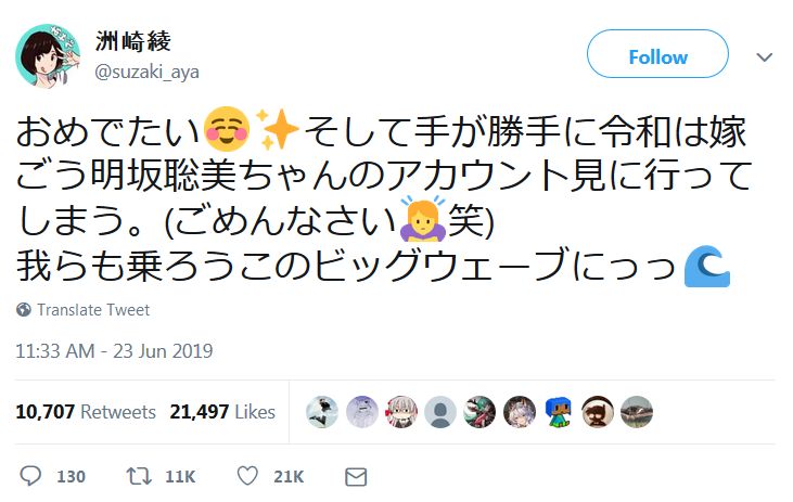 (출처: https://twitter.com/suzaki_aya/status/1142621612300107776)