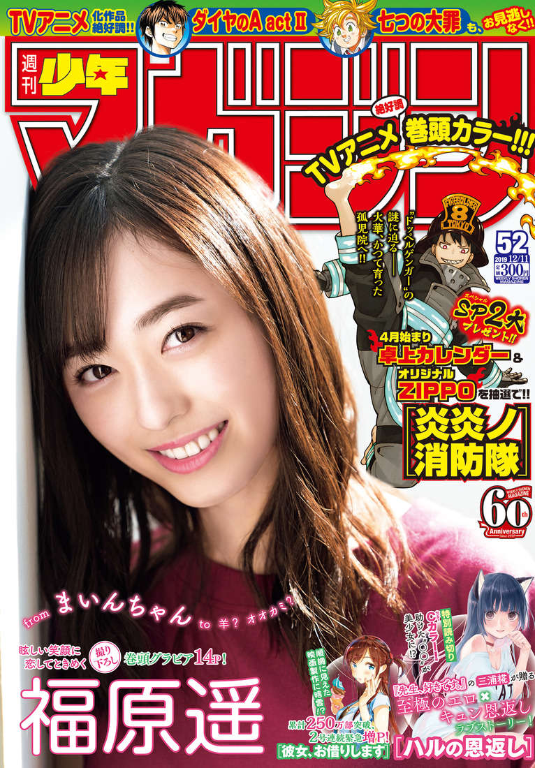 성우이자 배우인 '후쿠하라 하루카'의 사진이 주간 소년 매거진 표지 장식