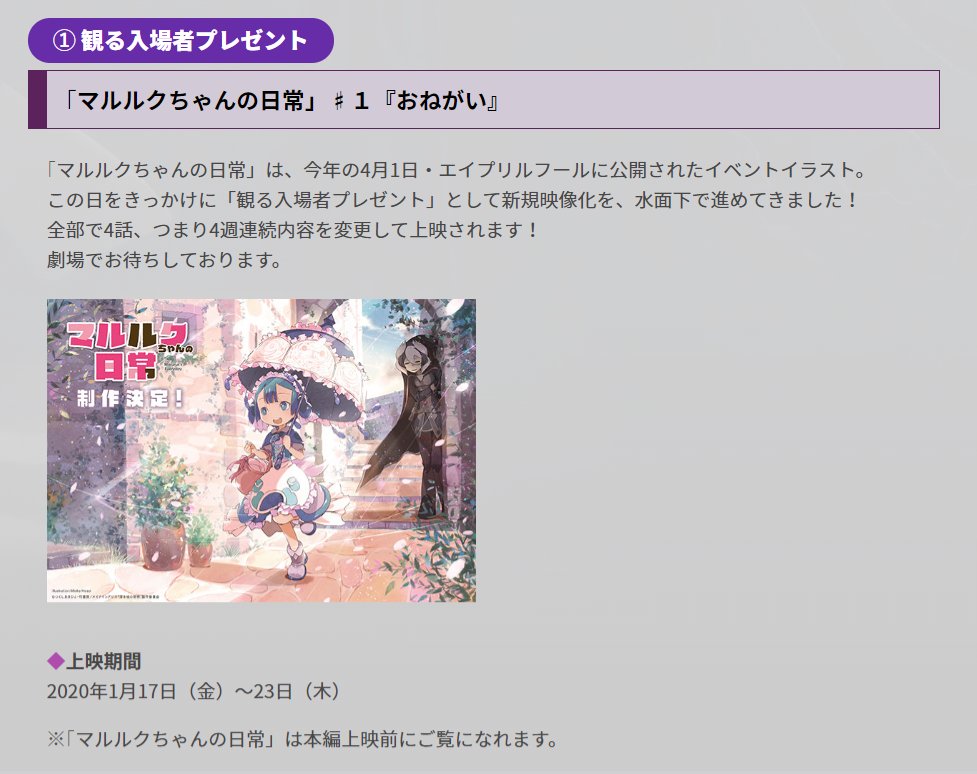 2020년 1월 17일부터 일본 전국에서 상영되는 극장판 애니메이션
