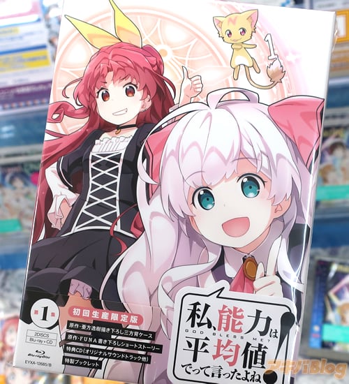 '저, 능력은 평균치로 해달라고 말했잖아요!' 블루레이 제 1권이 발매된 모습