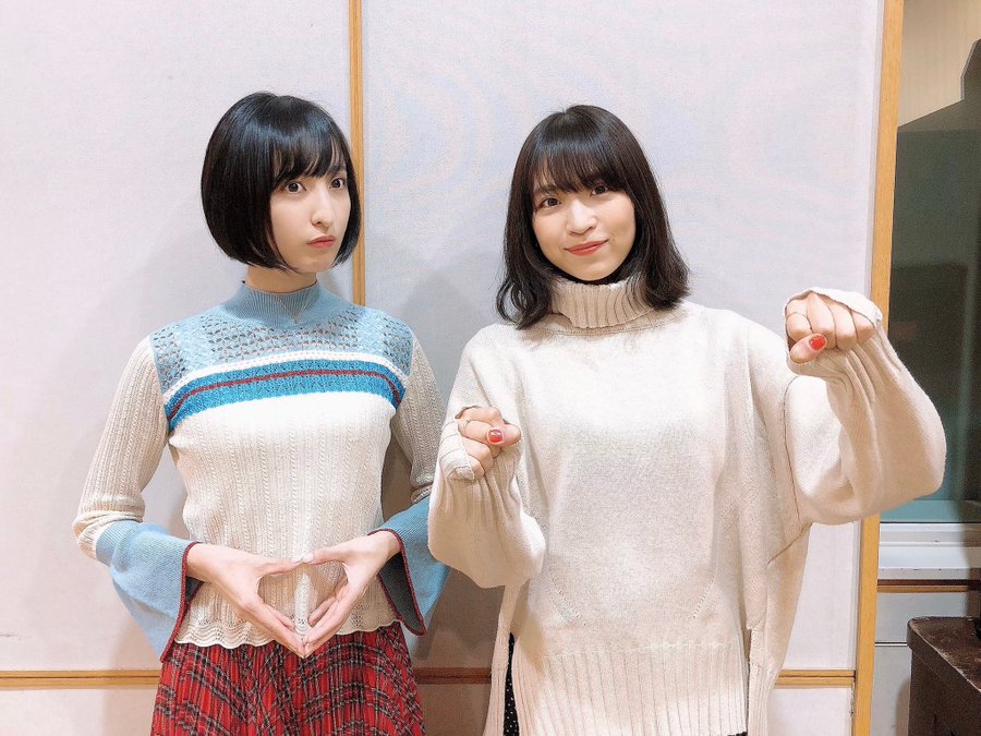 성우 사쿠라 아야네 & 오오니시 사오리의 사진, 겨울옷이 예쁘네요.