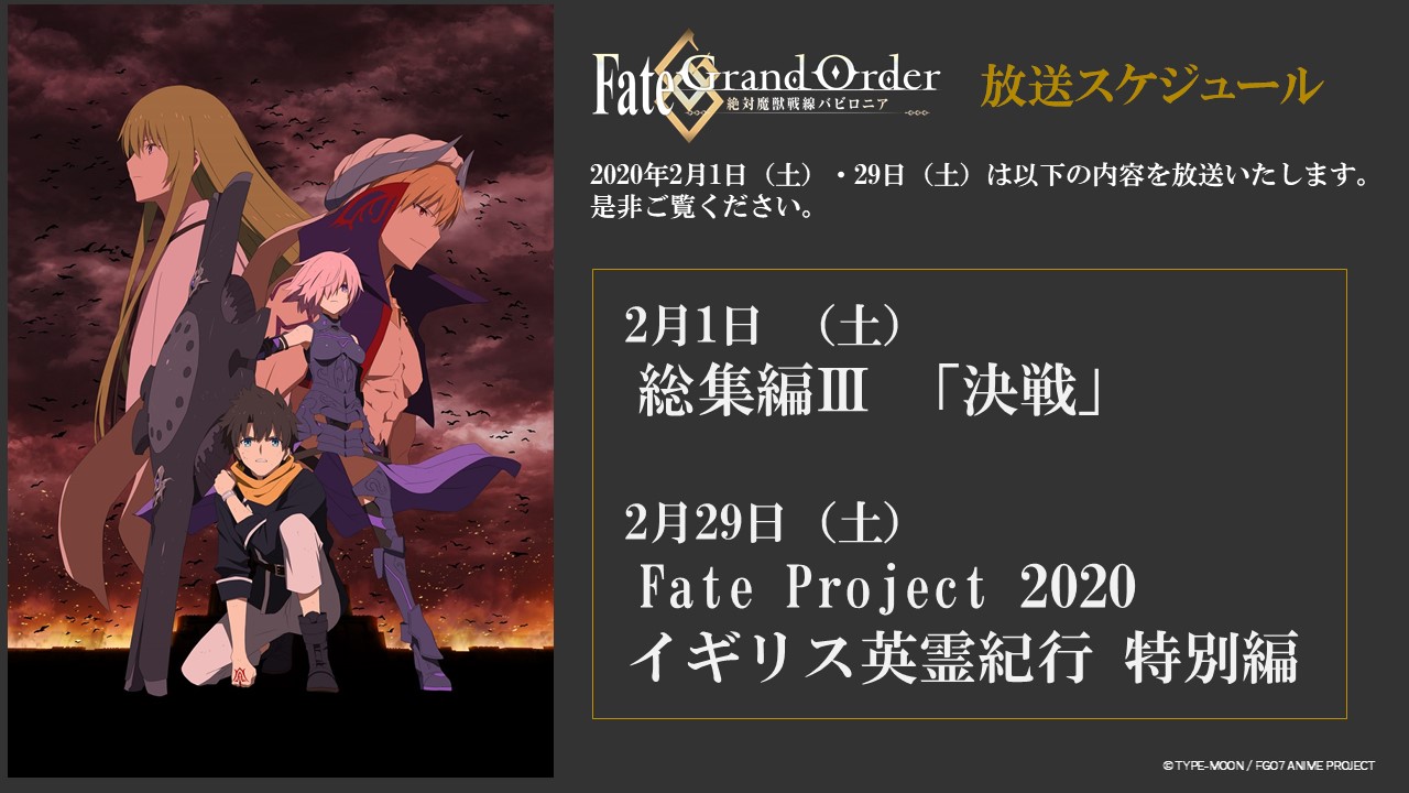 총집편III '결전'이 방송되고, 2020년 2월 29일에는 페이트 프로젝