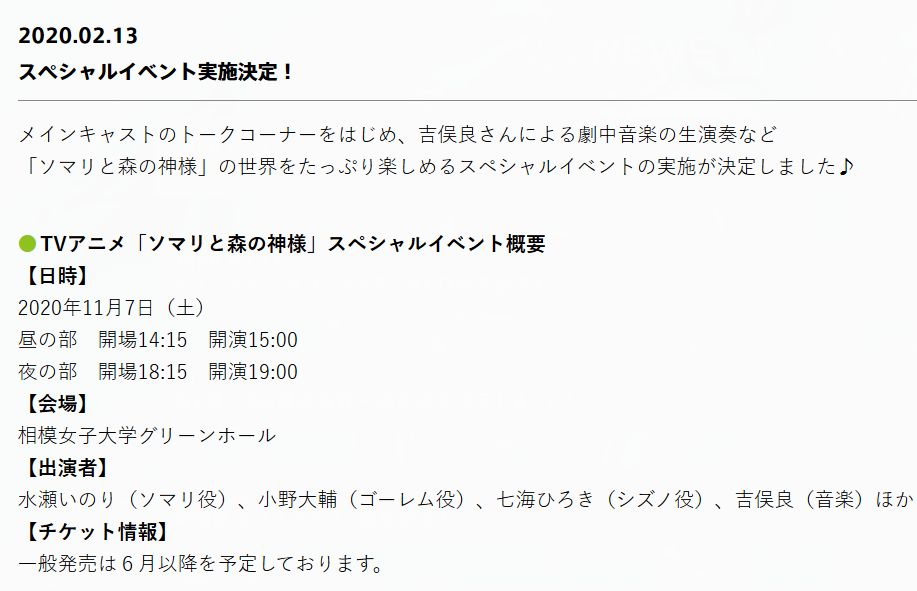 TV 애니메이션 '소말리와 숲의 신'의 스페셜 이벤트가 2020년