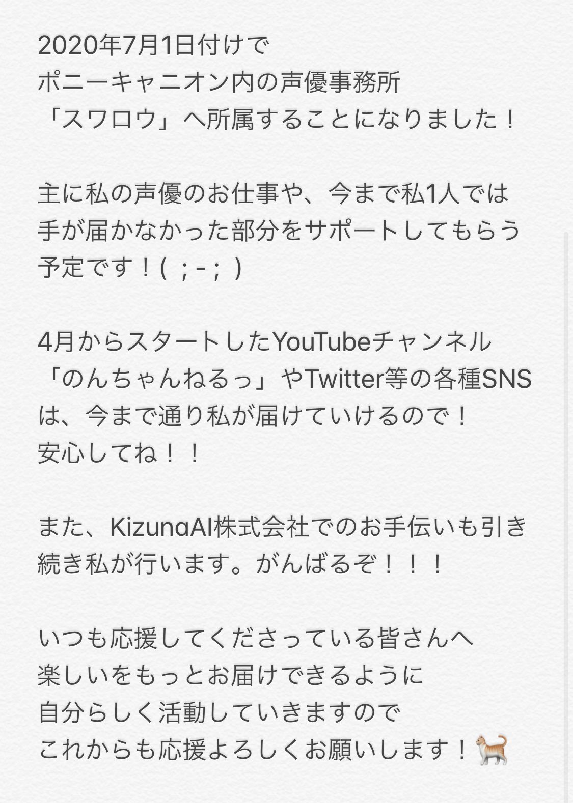 로 포니캐니언 내의 성우 사무소 '스왈로우' 소속이 되었음을 밝힌 모양입