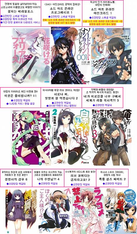 토모키 제이노블 5월 발행 예정작 - 소드 아트 온라인 프로그레시브 1권 외 9권 [애니] 작성일시 : 2013. 04. 23 (17:28) 조회 : 5,530 / 댓글 : 6 출처(링크) : http://cafe.naver.com/jnovel21/76114 0추천 글쓰기스크랩 신고