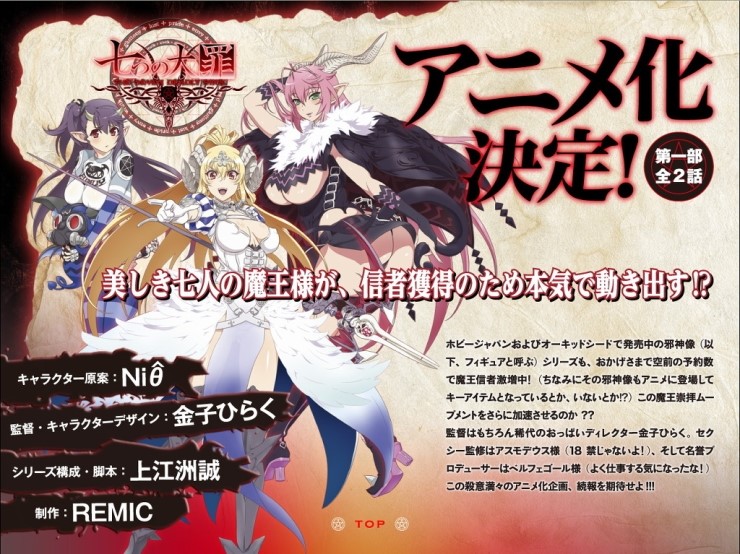 코테가와짱 '일곱개의 대죄' 애니화 결정!!! [애니] 작성일시 : 2013. 10. 09 (16:14) 조회 : 10,858 / 댓글 : 6 하비 재팬의 마왕숭배형 오리지널 미디어 믹스 컨텐츠 '일곱개의 대죄'(七つの大罪 )가 애니메이션화 제 1부 전 2화발매 예정 감독 및 캐릭터 디자인:카네코 히라쿠시리즈 구성:우에즈 마코토 애니메이션 제작은 REMIC[ 출처(링크) : http://7-sins.net/anime/anime.html 0추천 글쓰기스크랩 신고