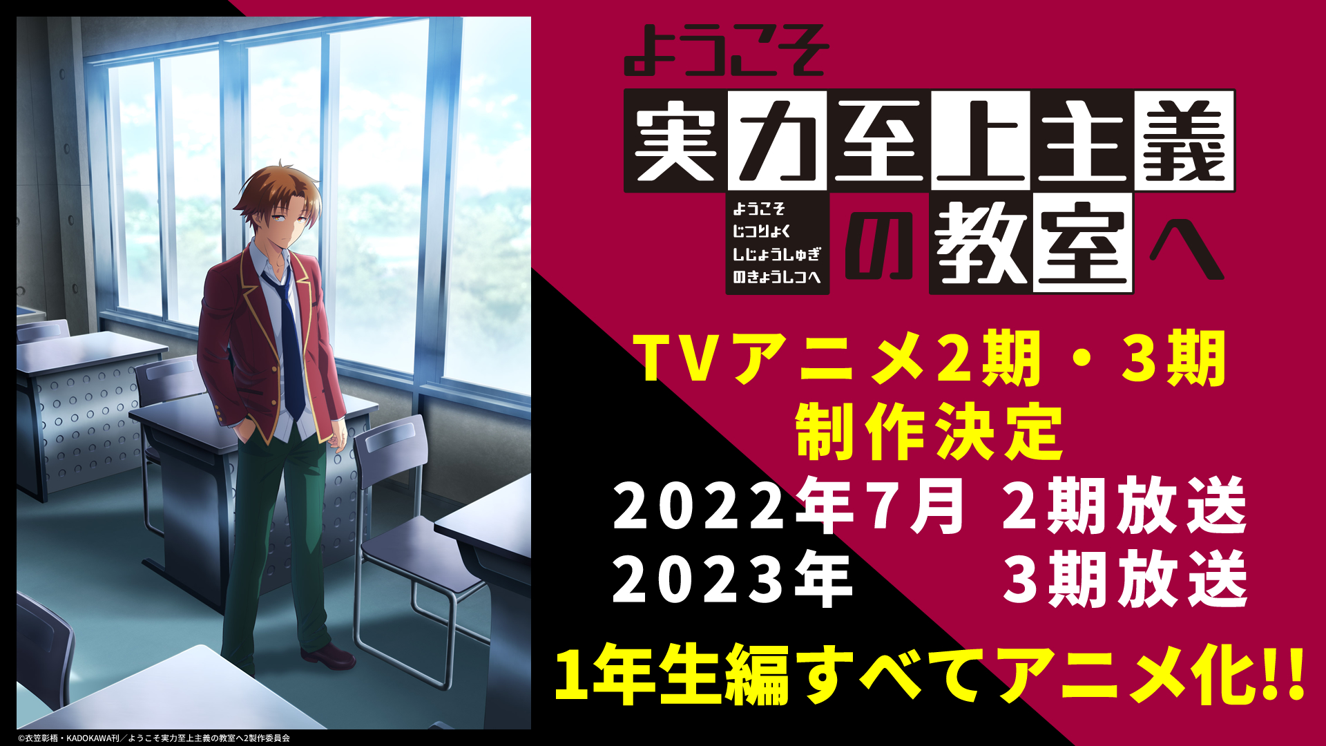 TV 애니메이션 「어서오세요 실력지상주의 교실에」의 2기・3기의 제작이 결정되었습니다.