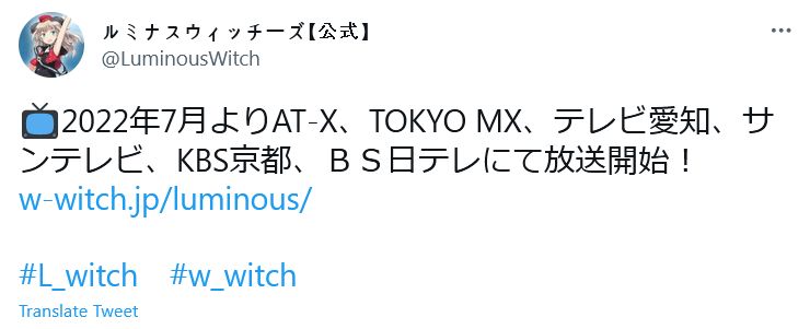 2022년 7월부터 AT-X, 도쿄MX, TV 아이치, SUN-TV, KBS 교토,