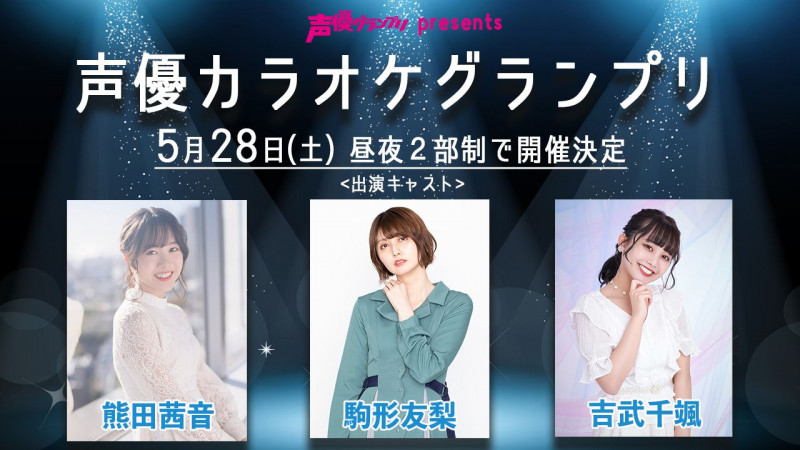 성우 코마가타 유리, 쿠마다 아카네, 요시타케 치하야, 성우 그랑프리의 가라오케 이벤트에 출연 예정
