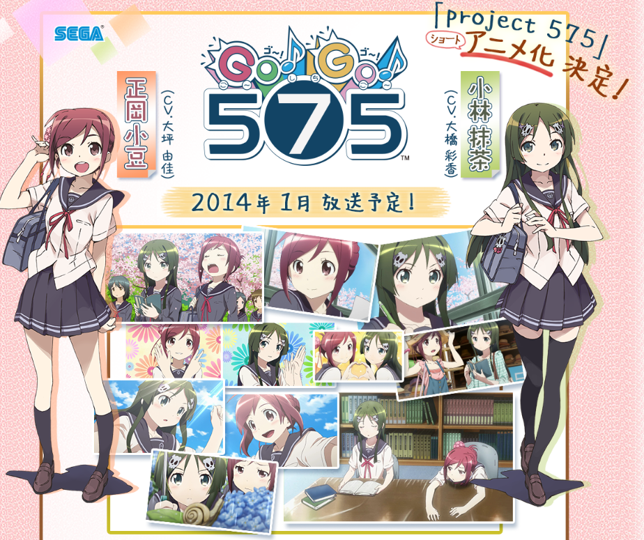 SEGA의 '프로젝트575'가 애니메이션화 되어 2014년 1월부터 'GO! GO! 575'라는 제목으로 방송될 예정이라고 합니다. '스폰서가 없으므로 자기 부담으로 만듭니다'라는 문구가 아래쪽에 붙어 있는 것으로 보아, 어째 5분짜리 짧은 애니메이션이 되지 않을까 하는 추측도 있던데요. 자세히 보니, 실제로 '숏 애니메이션'이라고 되어 있네요.