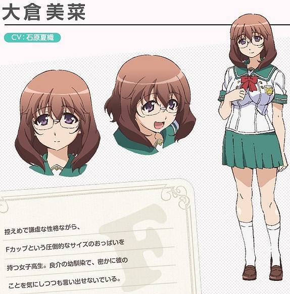 소극적이고 겸허한 성격이면서 F컵이라는 압도적인 사이즈의 가슴을 지닌 여고생.